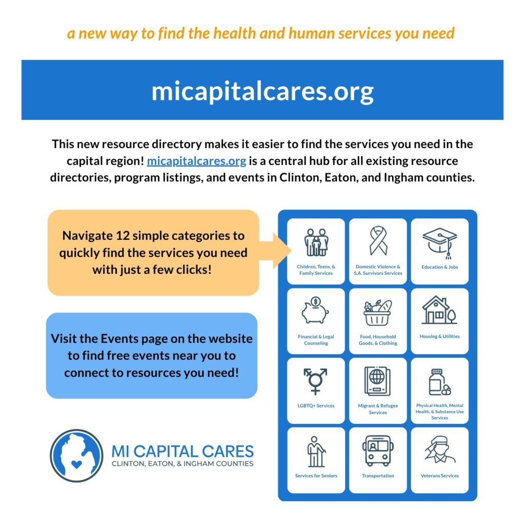 At the heart of the initiative is MICapitalCares.org, a new, user-friendly online hub developed in partnership with Central Michigan 211, and the Capital Cares Workgroup, which includes frontline workers and residents from across the tri-county region. The website makes it easier for residents and service providers to find and update local resources, post community events, and stay connected to support networks that improve well-being. UWSCMI is proud to serve as the fiduciary for the Power of We, as well as provide funding for Central Michigan 211.